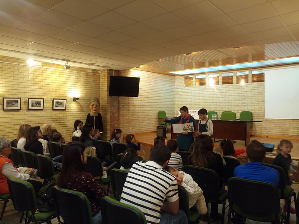 El domingo estuve en San Esteban de Litera donde vive Meritxell. Hace unas semana su madre me mandó una foto en la que Meritxell estaba contando «Por encima de rama y hoja» en el cole y me emocioné un montón.  Así que no dudé en decirle que cuando fuera a San Esteban contaríamos el cuento juntas.