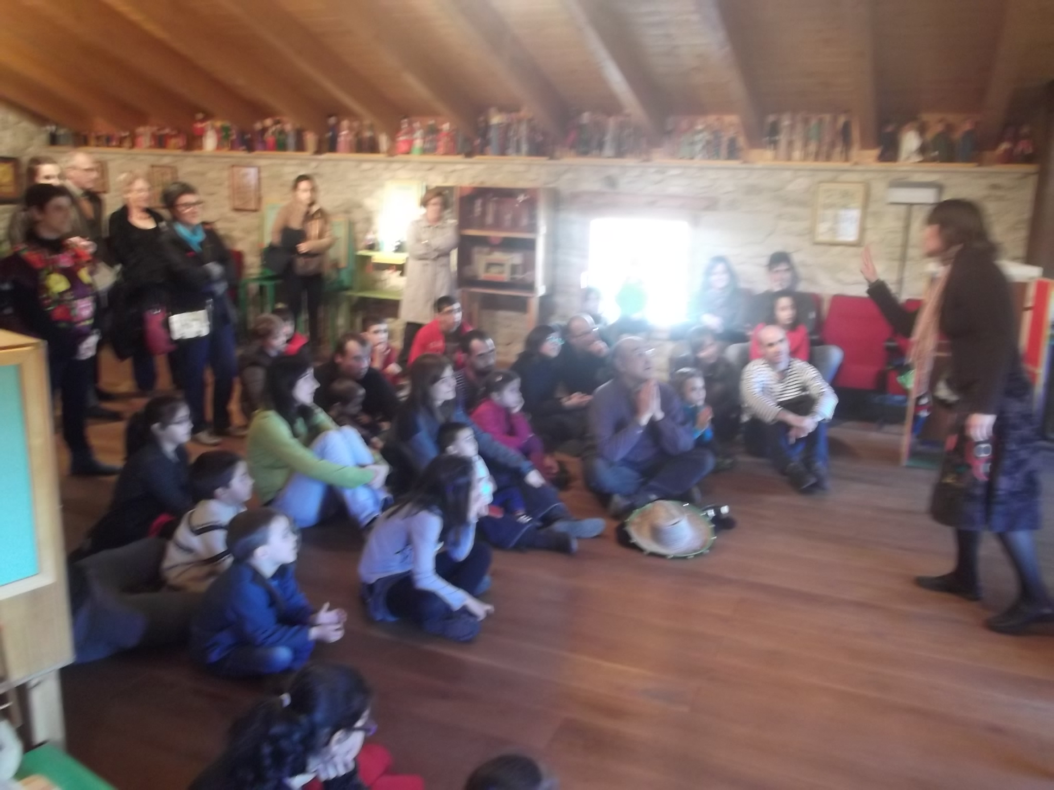 Como os digo, el domingo estuve presentado  Amina quiere ser bruja. Después de la especial representación de la obra Pedra a Pedra, del Home de Buixat, le tocó el turno a Amina. Como hacía bastante viento fuera y un poco de frío, decidimos hacer la presentación en el museo de los títeres, calentitos y con un montón de títeres atentos a Amina, además del  públíco, claro.