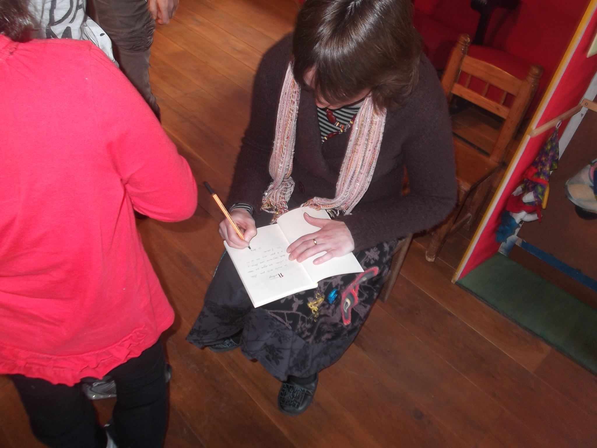 Después de la presentación los niños se acercaron para que les dedicara los libros. Por cierto, entre ellos ya había alguno que sabía hacer sus propios conjuros. Uno de ellos me contó que se sabía el truco de Amina del mando de la tele, ya lo había prácticado. El que más me sorprendió fue un niño, de unos cuatro años, que se acercó para que le dedicara su libro y me dijo que él sabía fabricar nieve. Lo dijo con una cara completamente seria y convencido de lo que decía. Le pregunté si me quería contar el secreto, pero me dijo que esas cosas no se contaban. Y es que en estas montañas hay gente que sabe mucho.