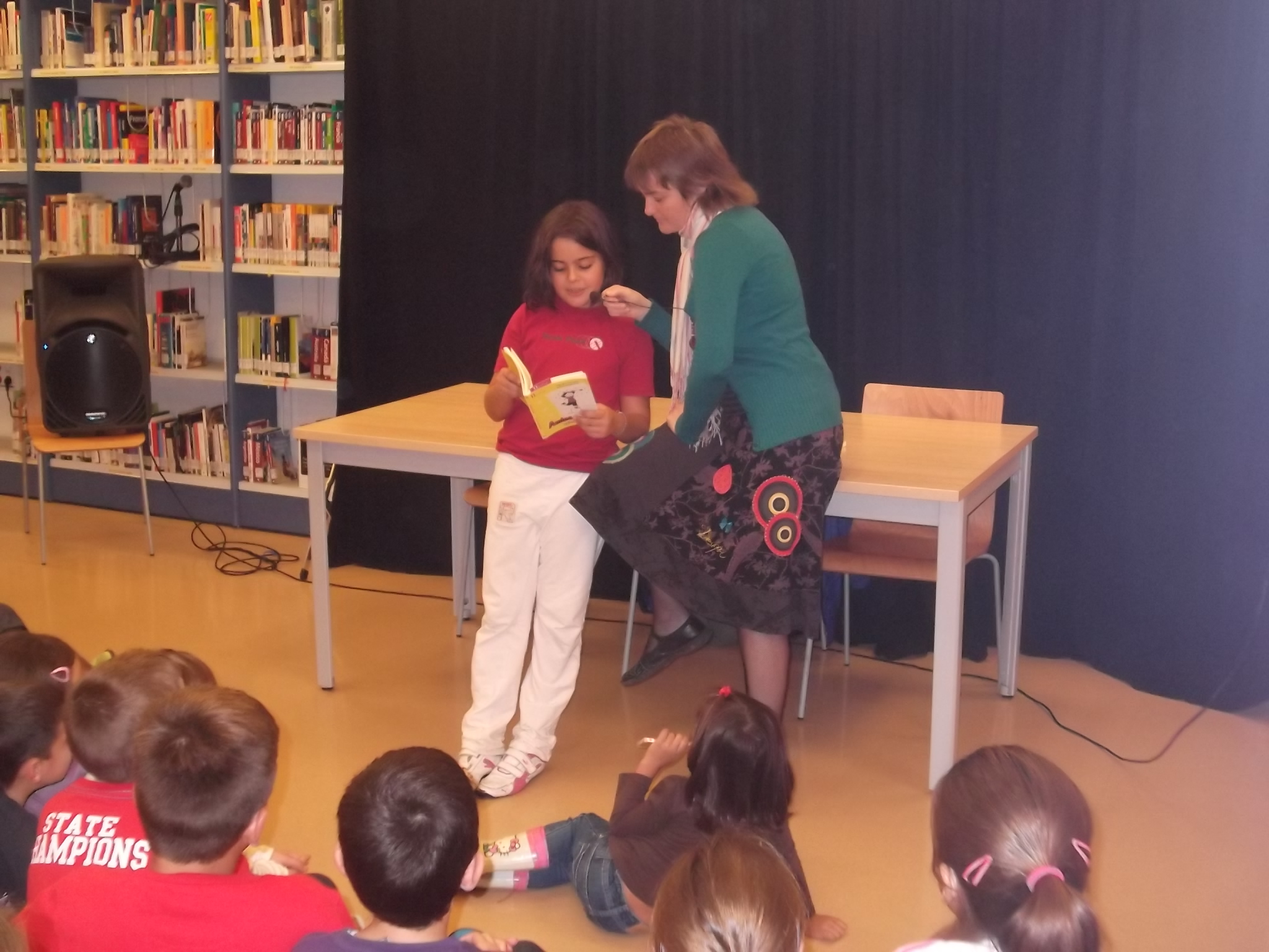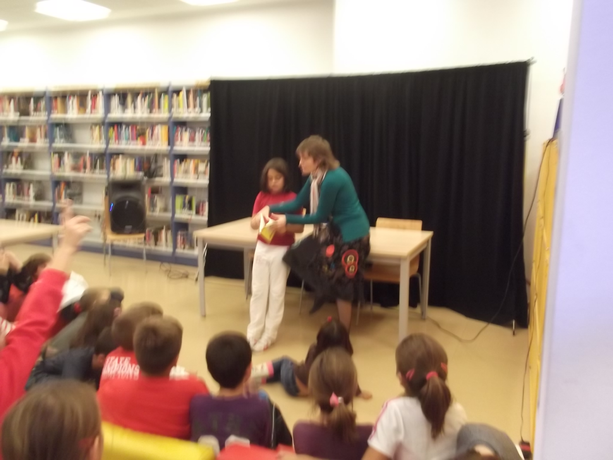 Vinieron un montón de niños y niñas, con mamás, algún papá y alguna abuela. Y por supuesto, el club de lectura Divertilibros que no quiso perderse la oportunidad de preguntarme cosas sobre Amina después de haber leído el libro en el club de la biblioteca.