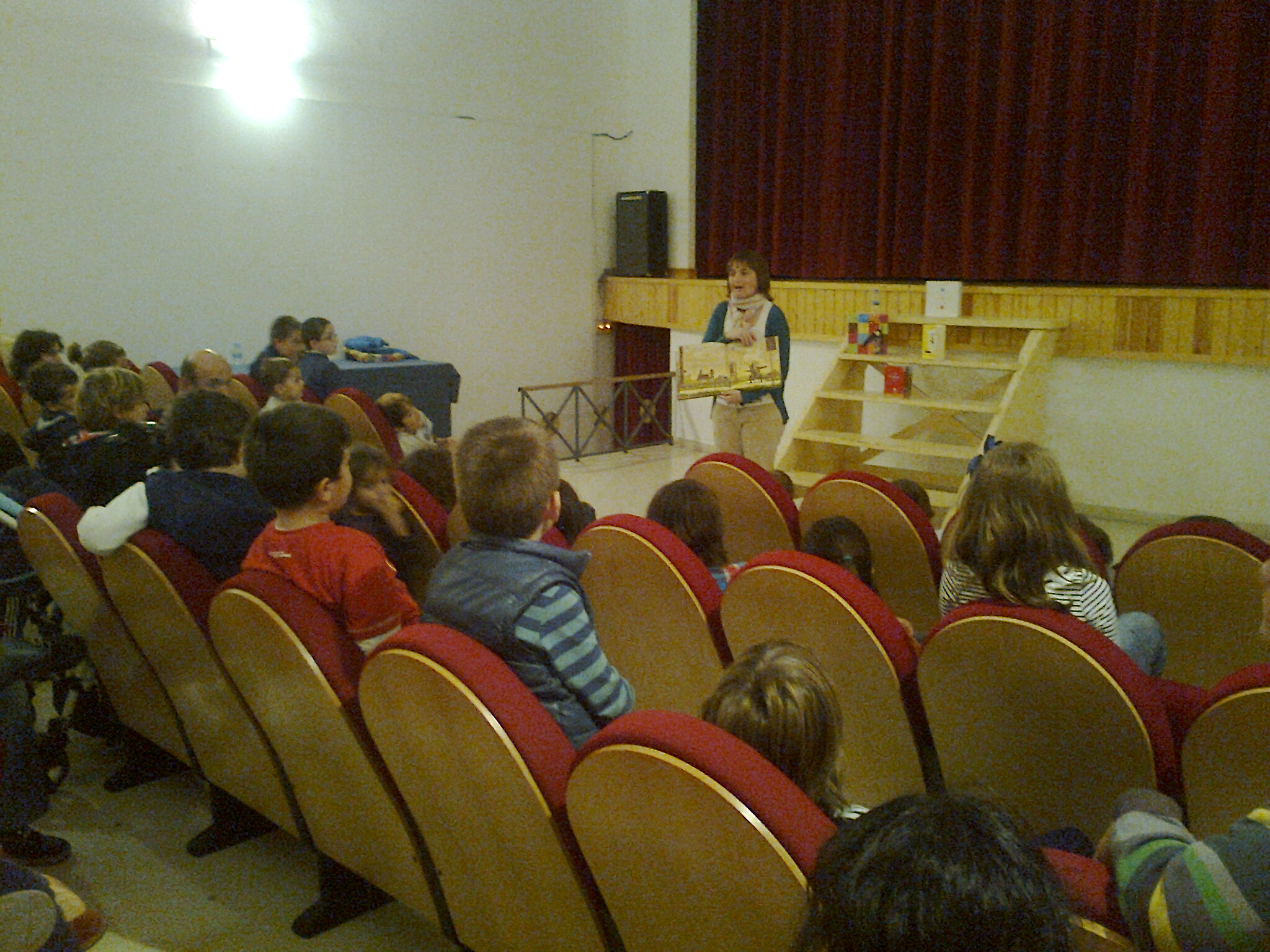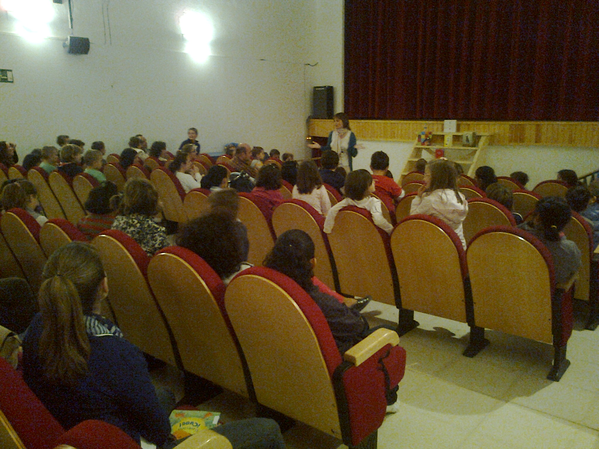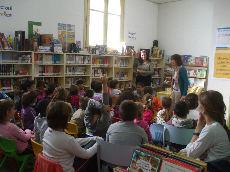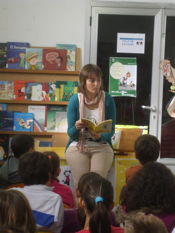 Ya había estado en la biblioteca en una campañaa de animación a la lectura de la comarca de la Hoya. Este año Belén quiso que fuera con ellos a celebrar el día de las bibliotecas. Antes de empezar se acercaron algunos niños con mamás para contarme que todavía se acordaban y se habían aprendido los cuentos de hacía dos años. Me hizo mucha ilusión.