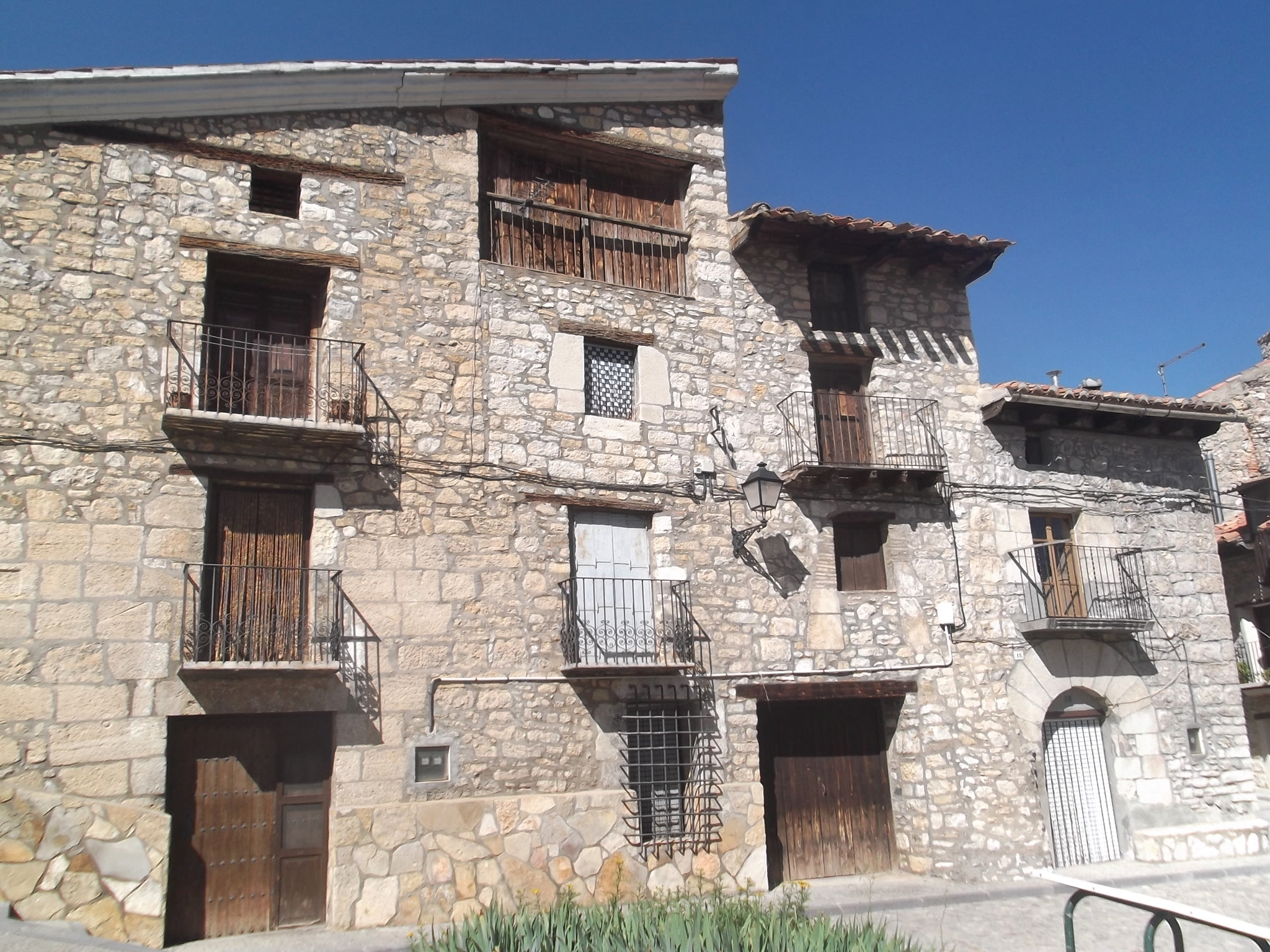 Fortanete es un lugar sorprendente. Al llegar no sabía si estaba en el Pirineo o en Teruel, realmente sorprendente. Esas casas de aleros de madera, encaladas de blanco, la piedra dominándolo todo, preciosos balcones de rejería o madera, fachadas con parras y portales con sabor, todo rodeado de montañas y pinares. Un lugar realmente precioso.