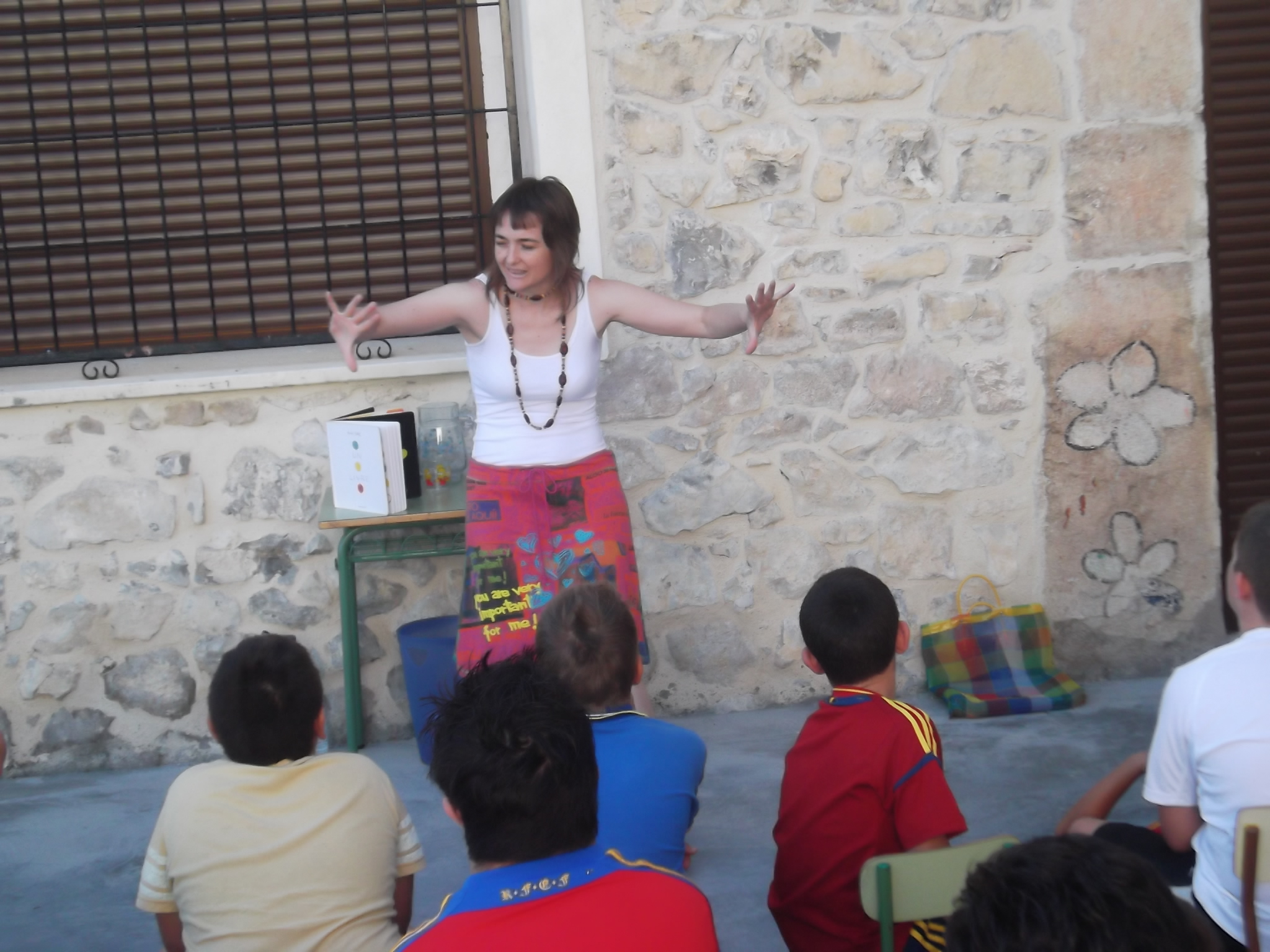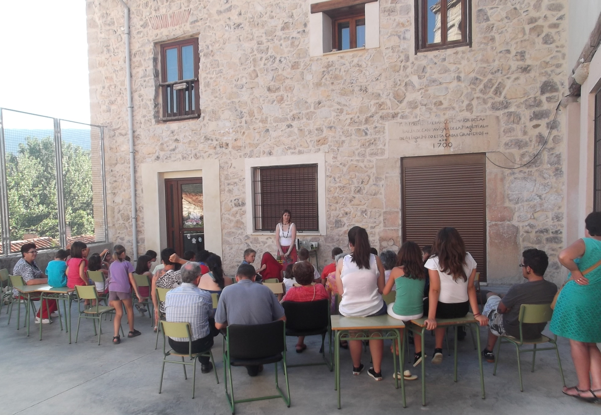El lugar, el patio de la escuela, antiguo edificio de 1700 que nos refugió con su fresca sombra.