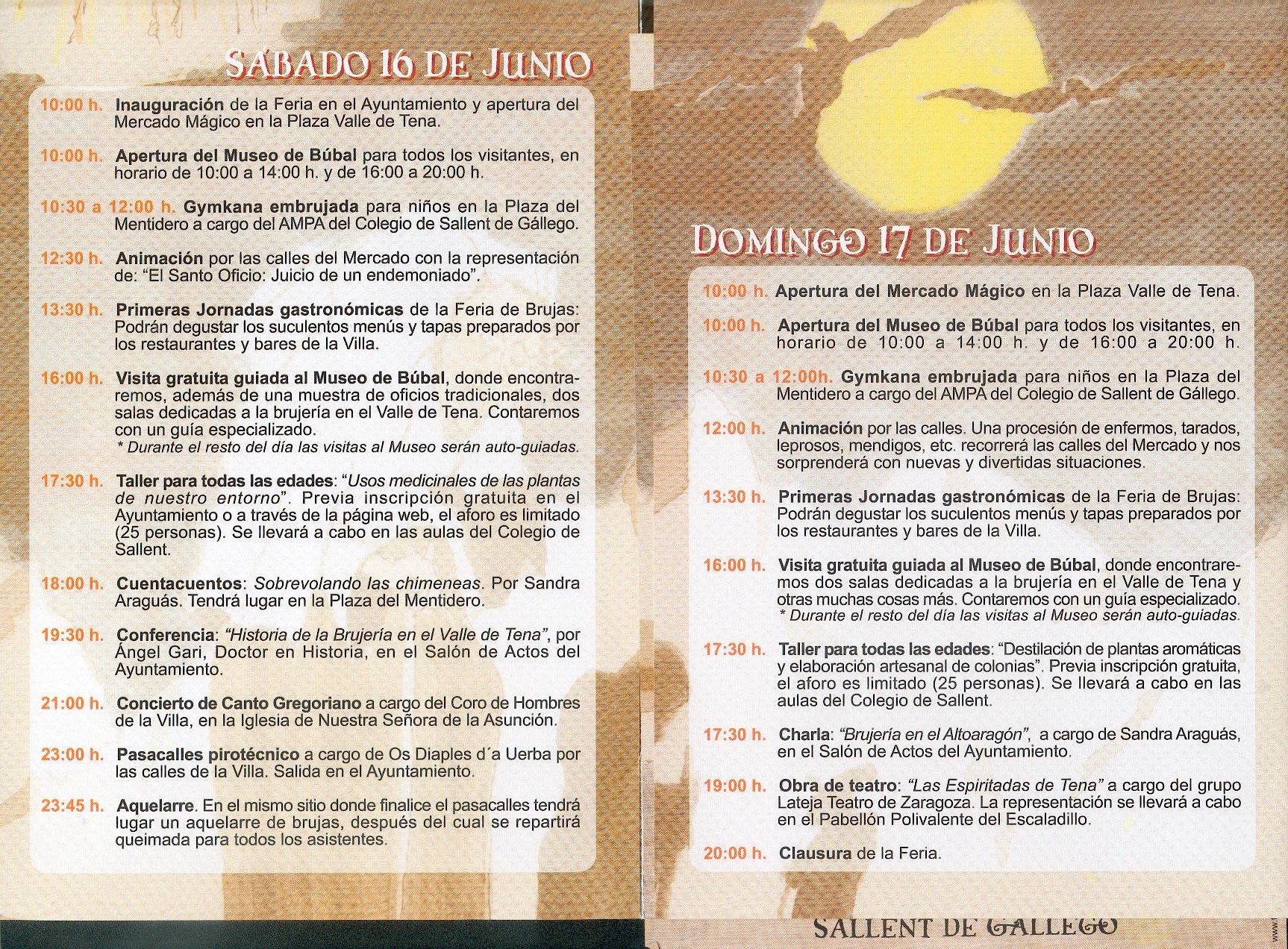 Además habrá un montón de actividades: ginkana para niños, mercadillo, talleres sobre plantas, charla de Ángel Gari sobre las brujas del valle de Tena, teatro, los Diaples d’a Uerba y hasta un aquelarre. Os dejo el tríptico con todas las actividades.