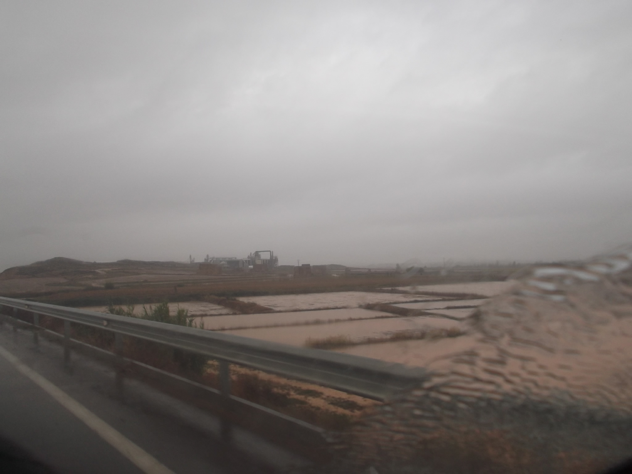 Hasta Lanaja, agua, agua y más agua. Los campos acumulaban toda la lluvia que ya no asimilaban, y continúo lloviendo todo el sábado y el domingo.