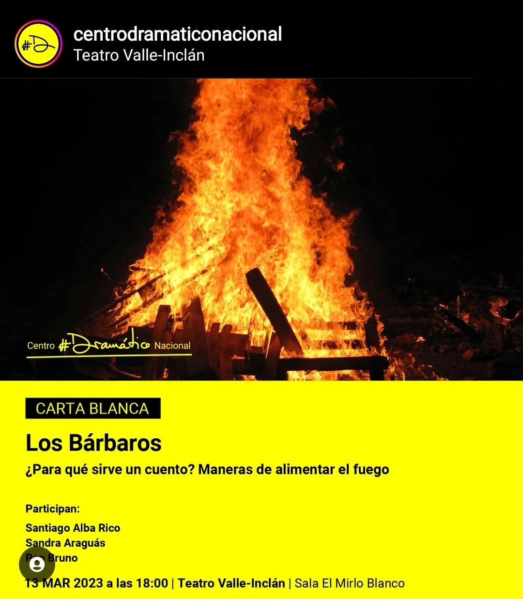 Bravo por el Centro Dramático Nacional por su maravillosa programación. Bravo por Los bárbaros, por este montaje tan valiente y por organizar esta charla en torno al mundo de los cuentos. Me siento afortunada de poder participar en ella