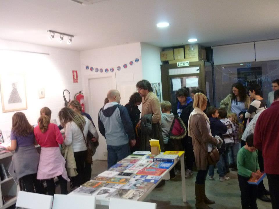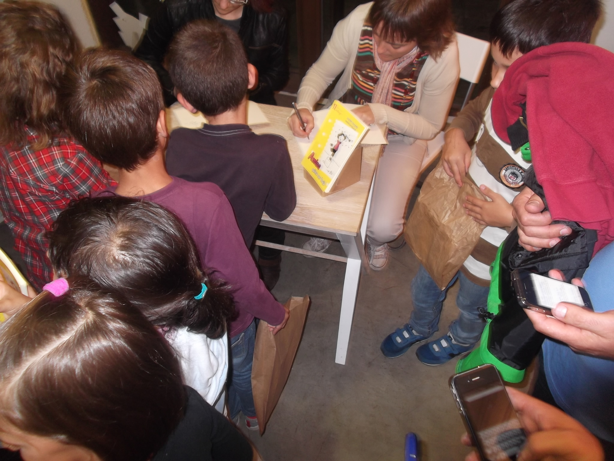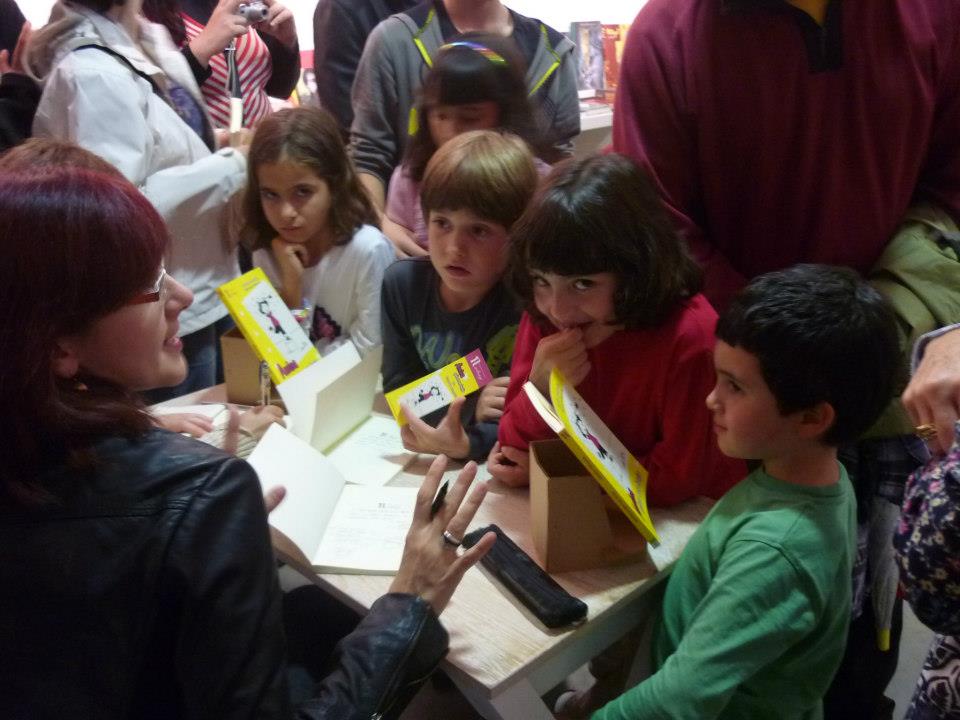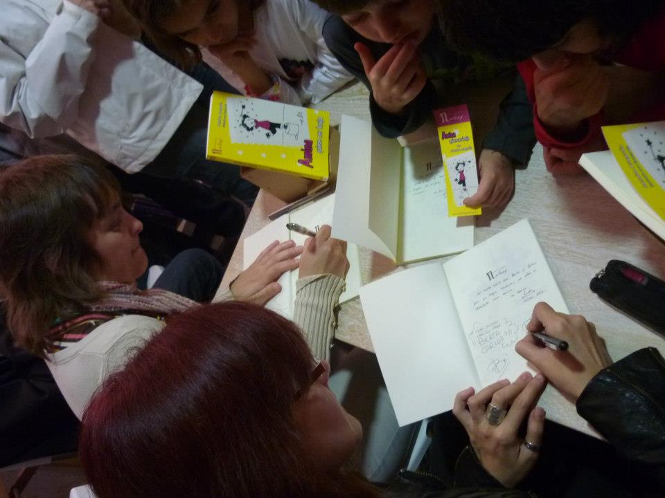 Al acabar, marabunta de libros para firmar.  Se nos acumulaba la faena.